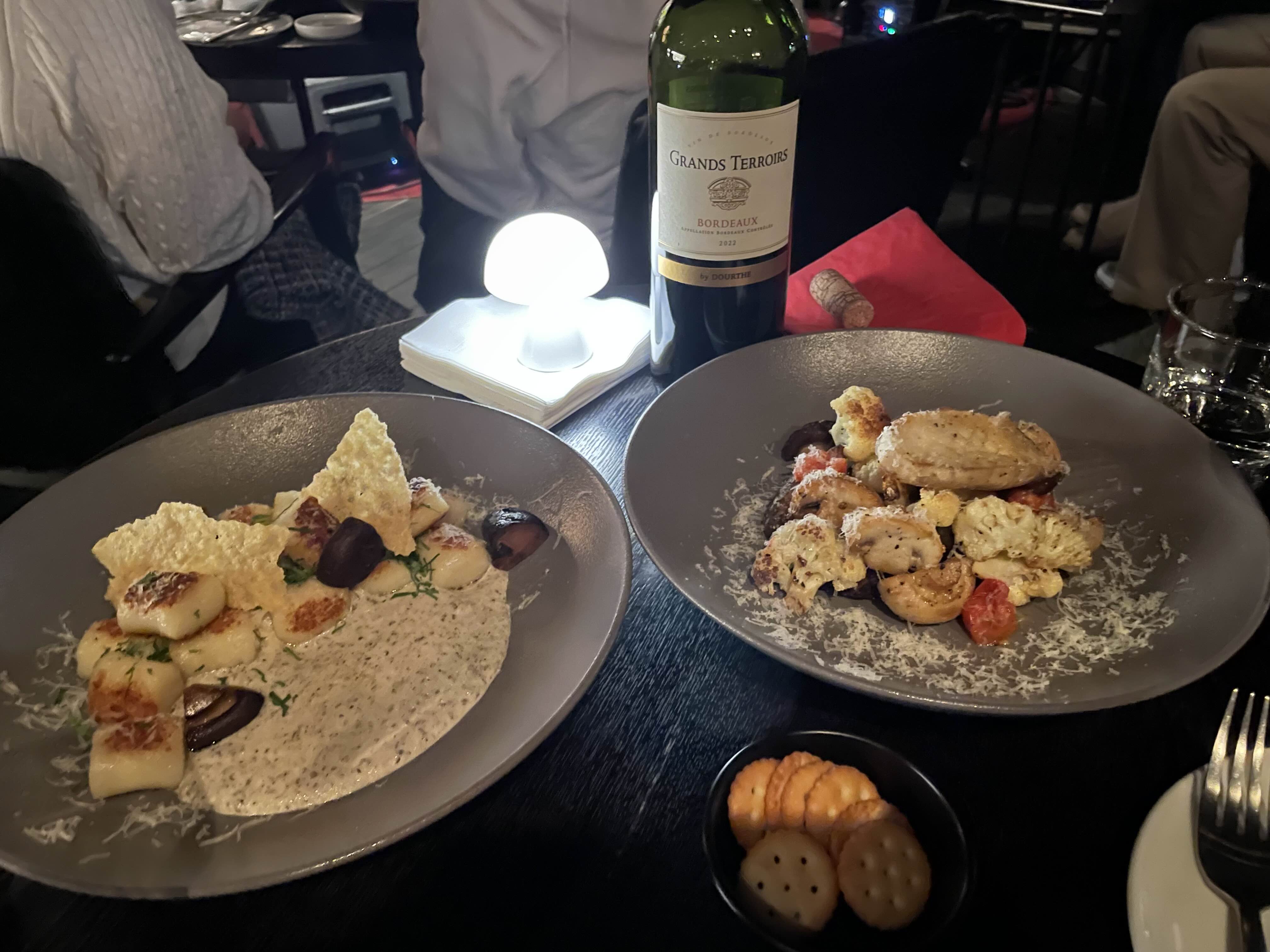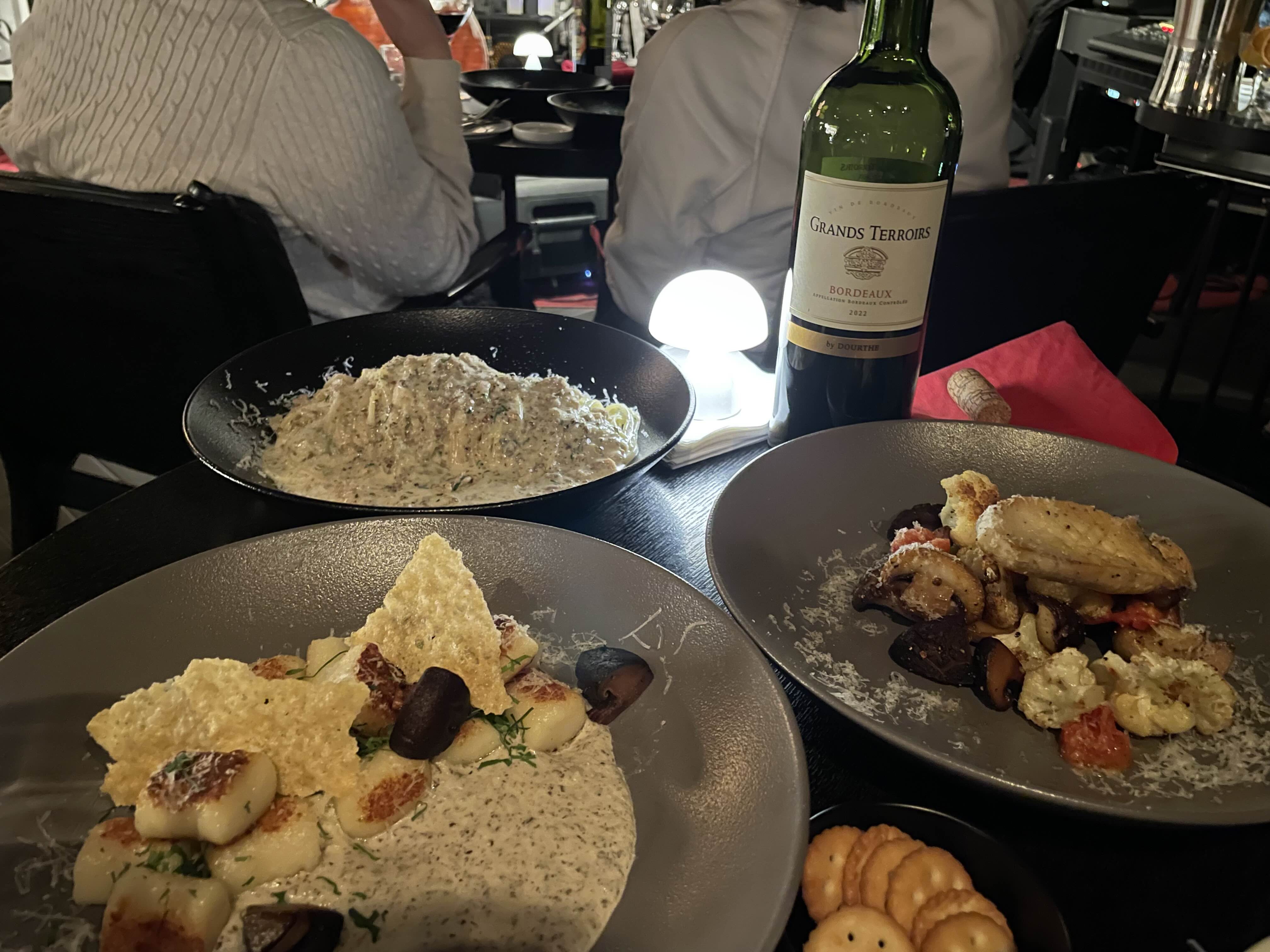 음식은 트러플뇨끼 & 버섯과 구운 야채 & 화이트라구 파스타
